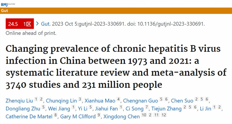 Gut杂志发表复旦大学人类表型组研究院与世卫组织国际癌症研究机构联合研究成果:中国慢性乙肝感染最新流行病学特征研究