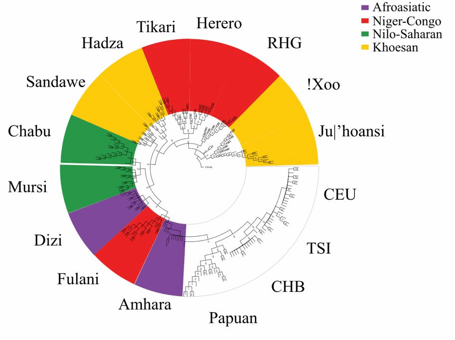现有研究表明,现代人类起源于非洲,相比于其它大陆,现代人类在非洲居住时间最长,并且在迁徙,融合和对环境适应性进化的过程中形成了超过3000个民族和2100种语言。目前非洲人群不仅具有世界上最丰富的遗传多样性和表型多样性,并且现代人类近三分之一的语言都在非洲,是全世界语言最为多样化的地区之一。