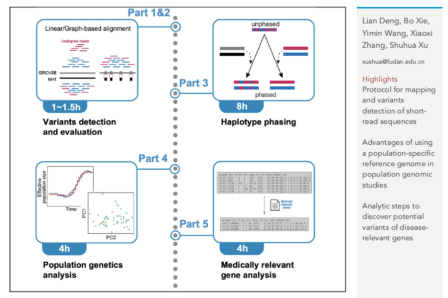 2022年5月30日,复旦大学徐书华团队在Cell Press旗下学术期刊Star Protocols在线发表了题为“A protocol for applying a population-specific reference genome assembly to population genetics and medical studies”的方法技术论文,公布了基于族群特异性参考基因组开展群体遗传学和医学遗传学研究的分析流程(图1)。