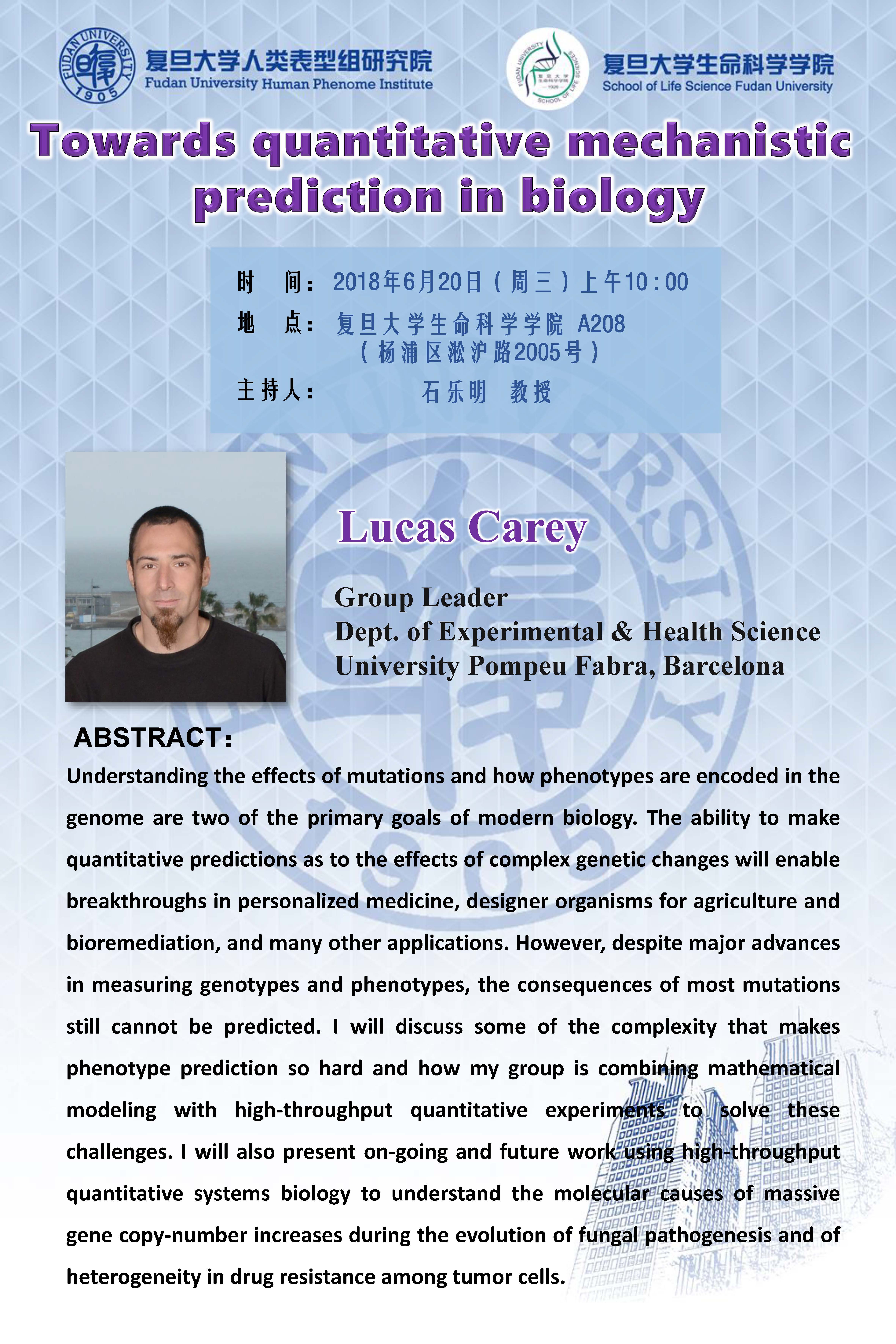 报告题目:Towards quantitative mechanistic prediction in biology