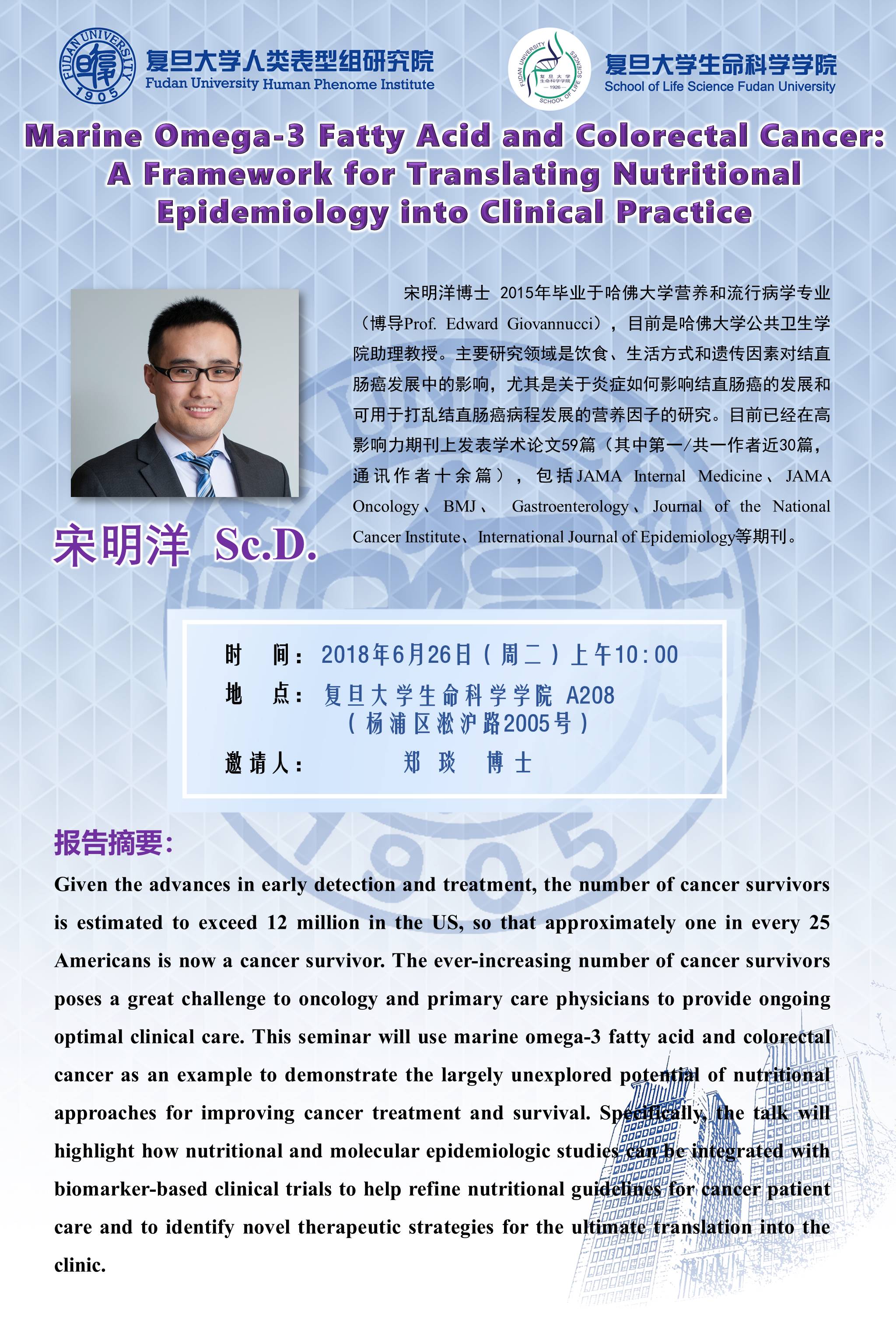 报告地点:复旦大学生命科学学院A208