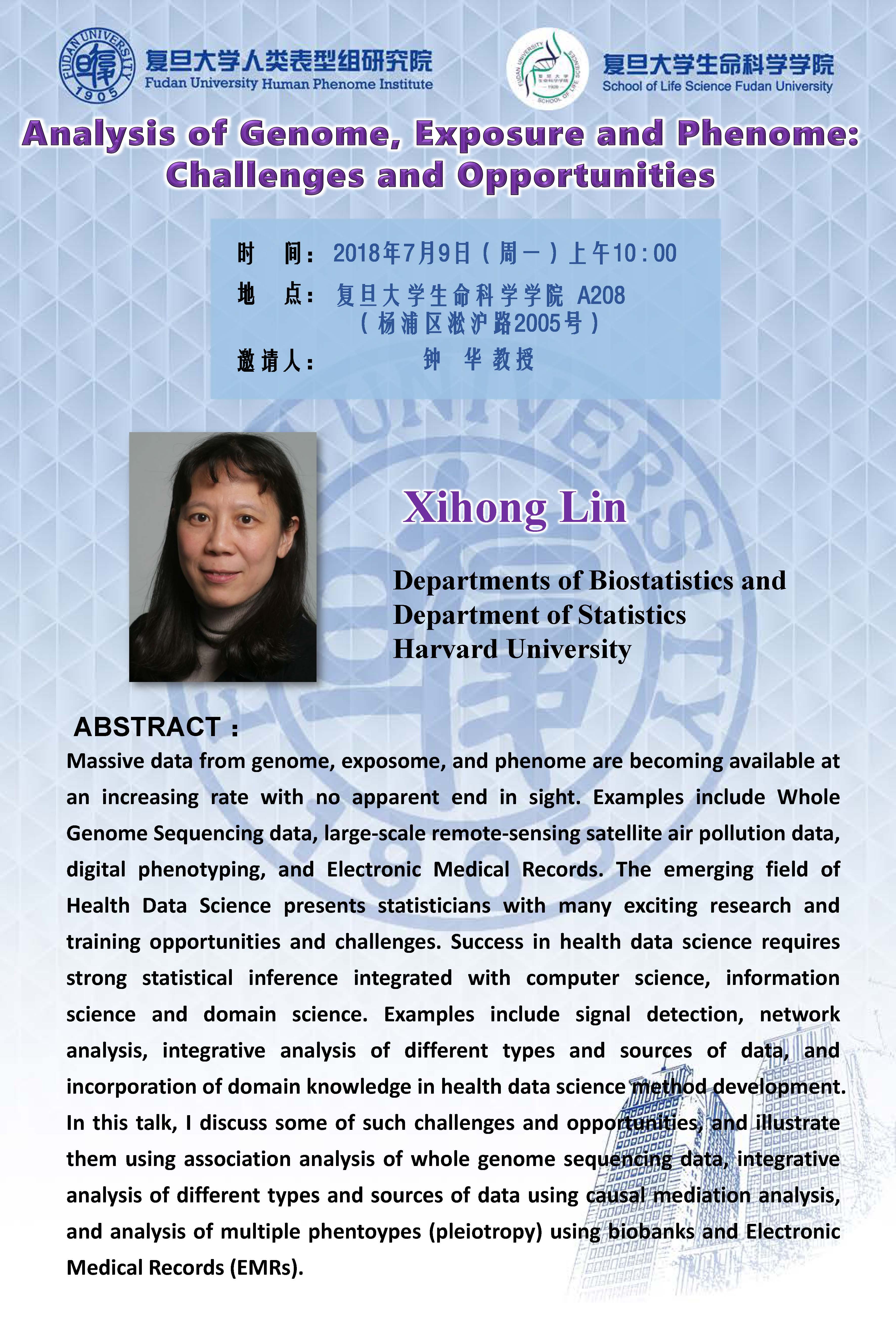 报告题目:Analysis of Genome, Exposure and Phenome: Challenges and Opportunities