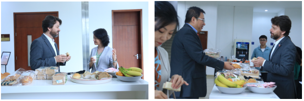 10月11日,荷兰驻华大使馆卫生、福利及体育参赞史明康(Nico Schiettekatte)来访复旦大学人类表型组研究院(以下简称”表型院“)。表型院田梅、刘铁民、唐惠儒、罗竞春教授以及青年研究员黄刚进行来访接待。校国际合作与交流处副处长许烨芳等相关负责老师陪同访问。