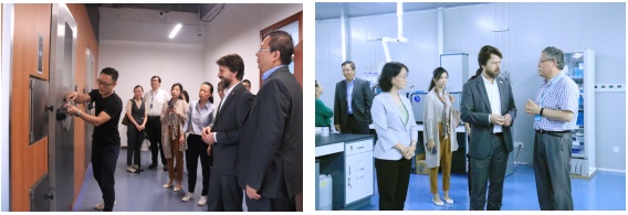 在刘铁民教授的引领下,史明康一行参观了表型院实验室与代谢舱。刘铁民教授向史明康一行详细讲解、介绍了荷兰MI公司为表型院专门设计定制的具有世界领先水平的人体能量代谢舱。参赞史明康也发表了自己的意见及想法。