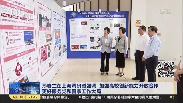 中共中央政治局委员、国务院副总理孙春兰6月17至18日在上海调研时强调,各高校要深入贯彻习近平总书记关于加强创新能力开放合作的重要指示精神,以开放的姿态同世界各国交流互鉴,广泛汇聚各方面创新资源,吸引和培养高精尖缺人才,提升科技创新能力,为推动经济高质量发展、提升国家核心竞争力贡献力量。
