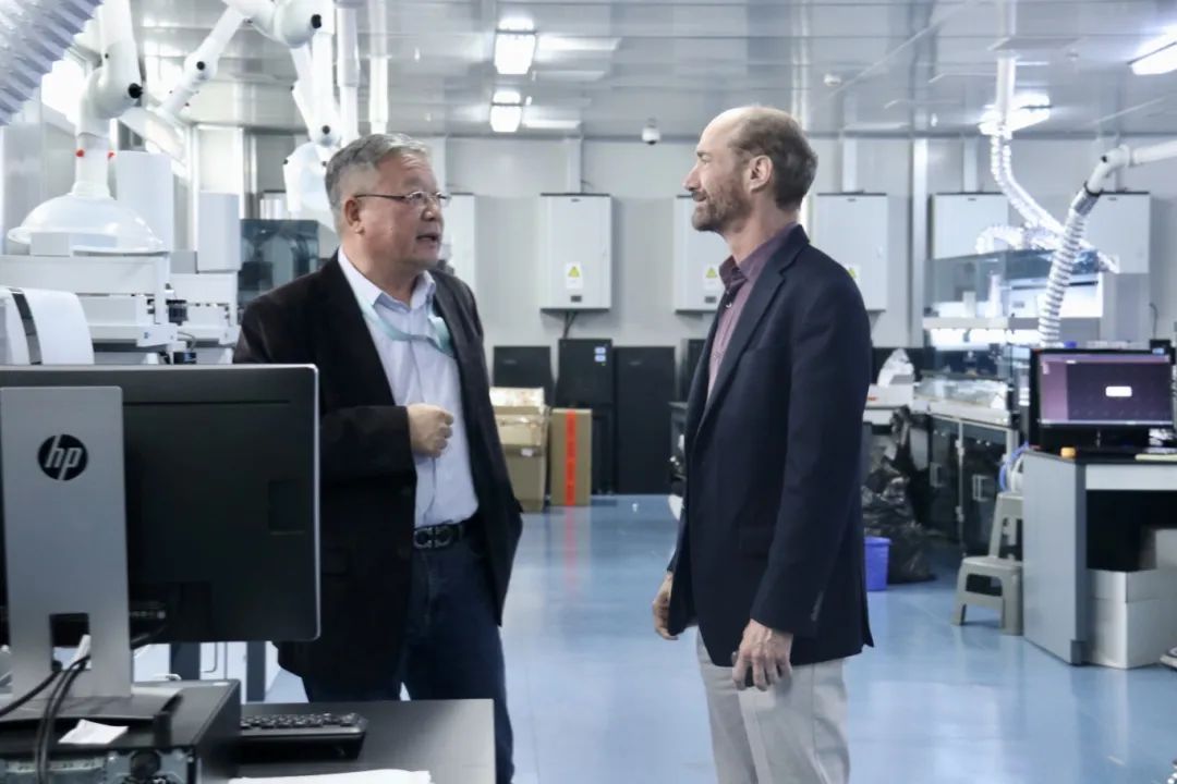 在丁琛教授、唐惠儒教授、罗竞春教授的带领下,迈克尔· 斯奈德教授一行参观了研究院检测中心、分子表型蛋白质组平台、分子表型代谢组平台,期间各平台负责人与迈克尔· 斯奈德教授进行了细致交流。