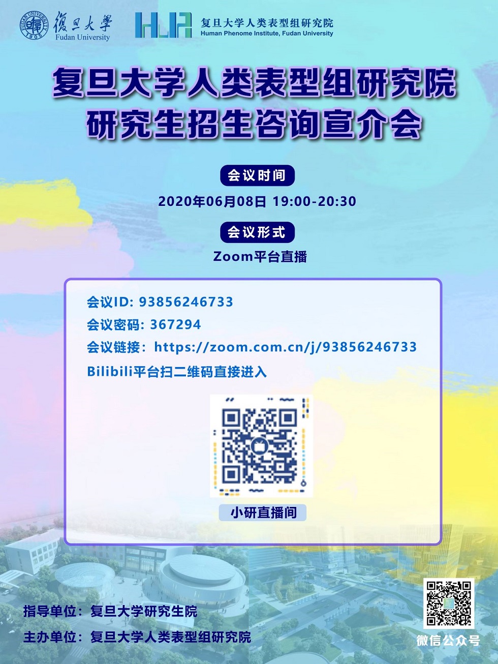 为帮助大家更加了解人类表型组研究院的基本情况及人才培养体系,我院特此面向全国举办本次研究生招生咨询宣介会。本期活动将采用导师宣讲与在线答疑的形式,围绕研究院整体情况、学科设置、招生政策等大家关心的议题展开交流,欢迎有意报考和加入复旦大学人类表型组研究院的同学们前来参加!