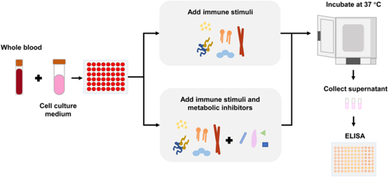 平台设计了经过系统优化的全血刺激体系用以解析人体免疫应答,包括全血刺激和细胞因子定量检测的标准化步骤,为大型队列研究提供了免疫功能评估的解决方案。