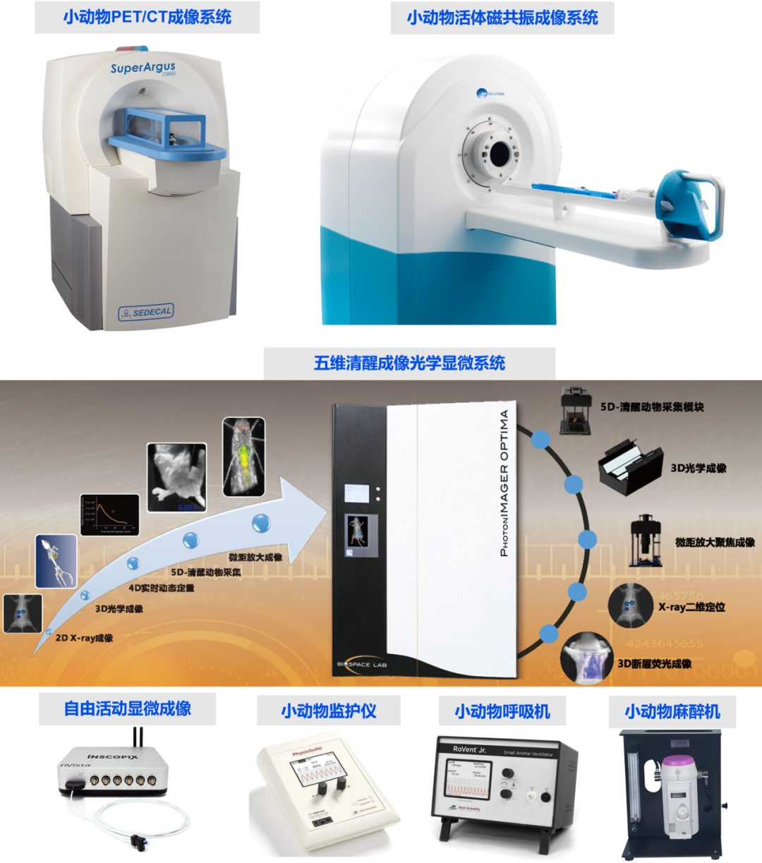 临床前分子影像平台秉承“多学科交叉融合与技术创新驱动”的发展理念,聚焦“科研创新、临床转化与产业化应用”的核心需求,配备小动物专用的正电子发射断层扫描 / X射线计算机断层成像(PET/CT)、磁共振成像(MRI)和五维清醒成像系统等高端核心影像设备,构建了覆盖分子、细胞至动物活体层面的跨尺度、多维度、高精度的多模态影像技术体系。本平台能够支持从基础机制探索到在体功能验证的全流程研究,为探索生命活动规律奥秘,解析疾病发生、发展、干预与转归等机制提供有力工具。