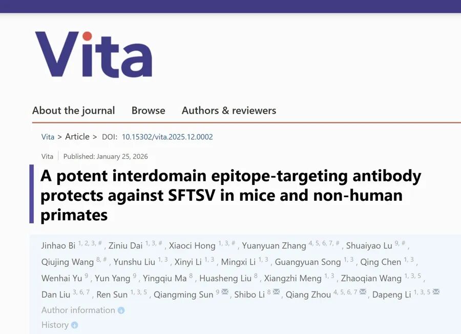 3篇Vita首发论文分别来自西湖大学李大鹏教授研究组、武汉大学蓝柯教授研究组,以及中国科学院院士颜宁团队。其中,李大鹏的研究聚焦东亚地区蜱虫所携带的一种致命病毒SFTSV人源抗体。由于SFTSV尚未传播到北美地区,多数国际科学期刊编辑往往对艾滋病、猴痘等病毒研究更感兴趣。而在李党生看来,SFTSV感染可能引发重症且迄今尚无药可医,这一研究显然对中国和东亚地区具有重要意义,于是决定作为首批原创论文上线——这类聚焦区域重要疾病、学术价值突出,但未获国际顶刊青睐的成果,Vita会给予充分认可。